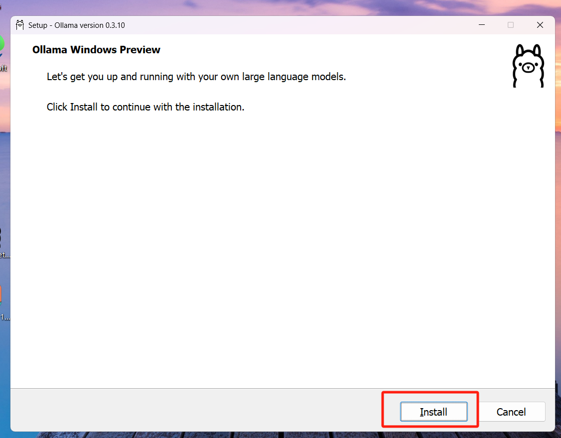 Windows:访问 Ollama 官网,下载对应系统的安装包,双击运行并完成安装。